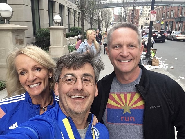 Not surprisingly, Rick knows her. He sent me the picture below, showing Susan, Rick, and Susan’s husband, Bill, at the 2017 Boston Marathon.