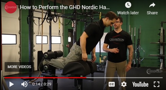 I tried doing Nordic lowers by wedging my feet under the living room couch. Unfortunately, I found that I could not “lean forward in smooth movement” far at all before falling on my hands. My big idea, therefore, was that maybe the training machine known as the Glute-Ham Developer (GHD) would be easier and better (see YouTube video, below). One of my “running family” members, Jamie K., is a former star college soccer player (star high school player and probably star from much earlier). She confirmed that elite soccer players today do use this exercise and that they are easier on a GHD. My new plan is to start a GHD Nordic lower program shortly after Grandma’s Marathon!