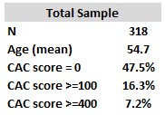 - They found 16.3% of 318 “middle-aged sportsmen” had CAC scores >=100 (Table 5).