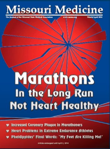 - Schwartz RS, Kraus SM, Schwartz JG, Wickstrom KK, Peichel G, Garberich RF, Lesser JR, Oesterle SN, Knickelbine T, Harris KM, Duval S, Roberts WO, O’Keefe JH. Increased coronary artery plaque volume among male marathon runners. Missouri Medicine. 2014 Mar-Apr;111(2):89-94.